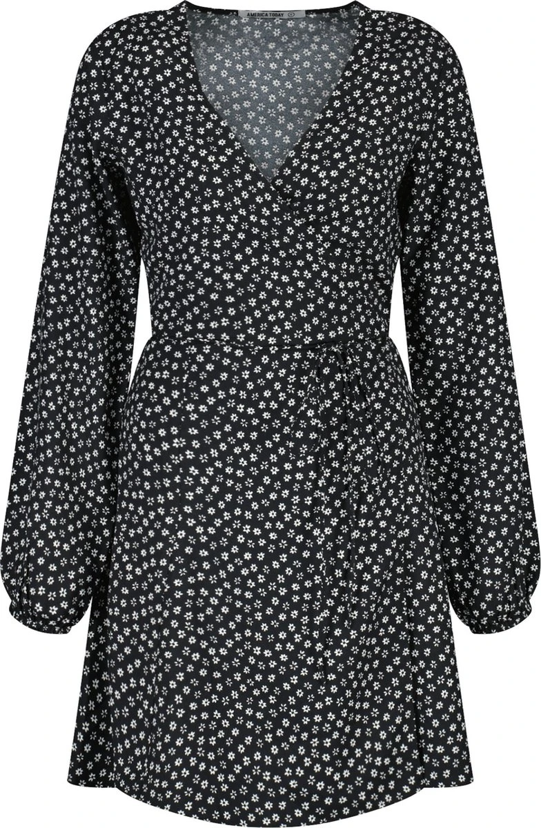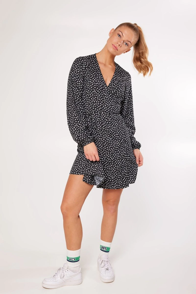 America Today jurk voor vrouwen. De Dana jurk is een jurk met lange mouwen en een all-over print. Hiernaast heeft de jurk ook een wrap detail en een V-hals. Ons model is 175 cm en draagt maat S. Product details: • All-over print • Longsleeve • Wrap jurk
