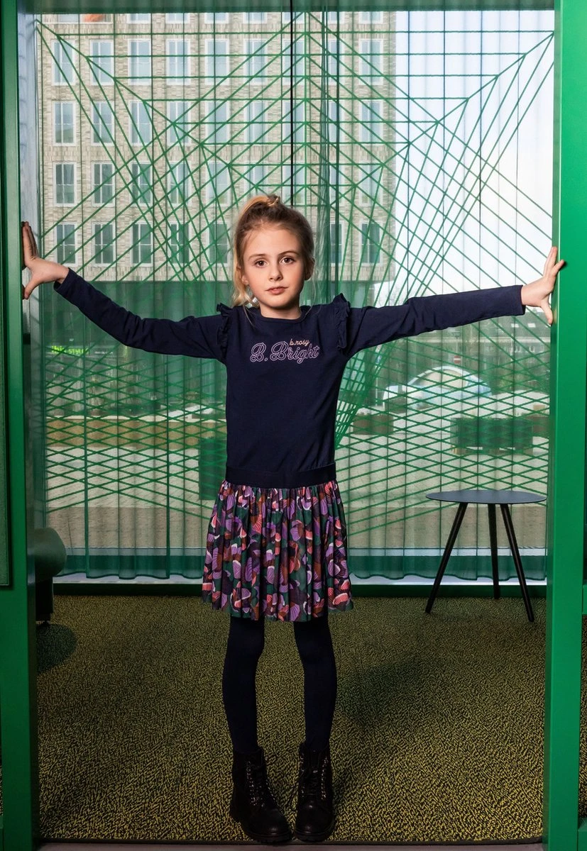 Shine bright like a diamond is dit prachtige jurkje uit de B. Bright collectie! Het jurkje heeft een mooi geborduurd artwork en een rok in de fantastiche poppifield all-over print.