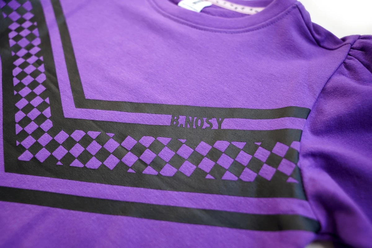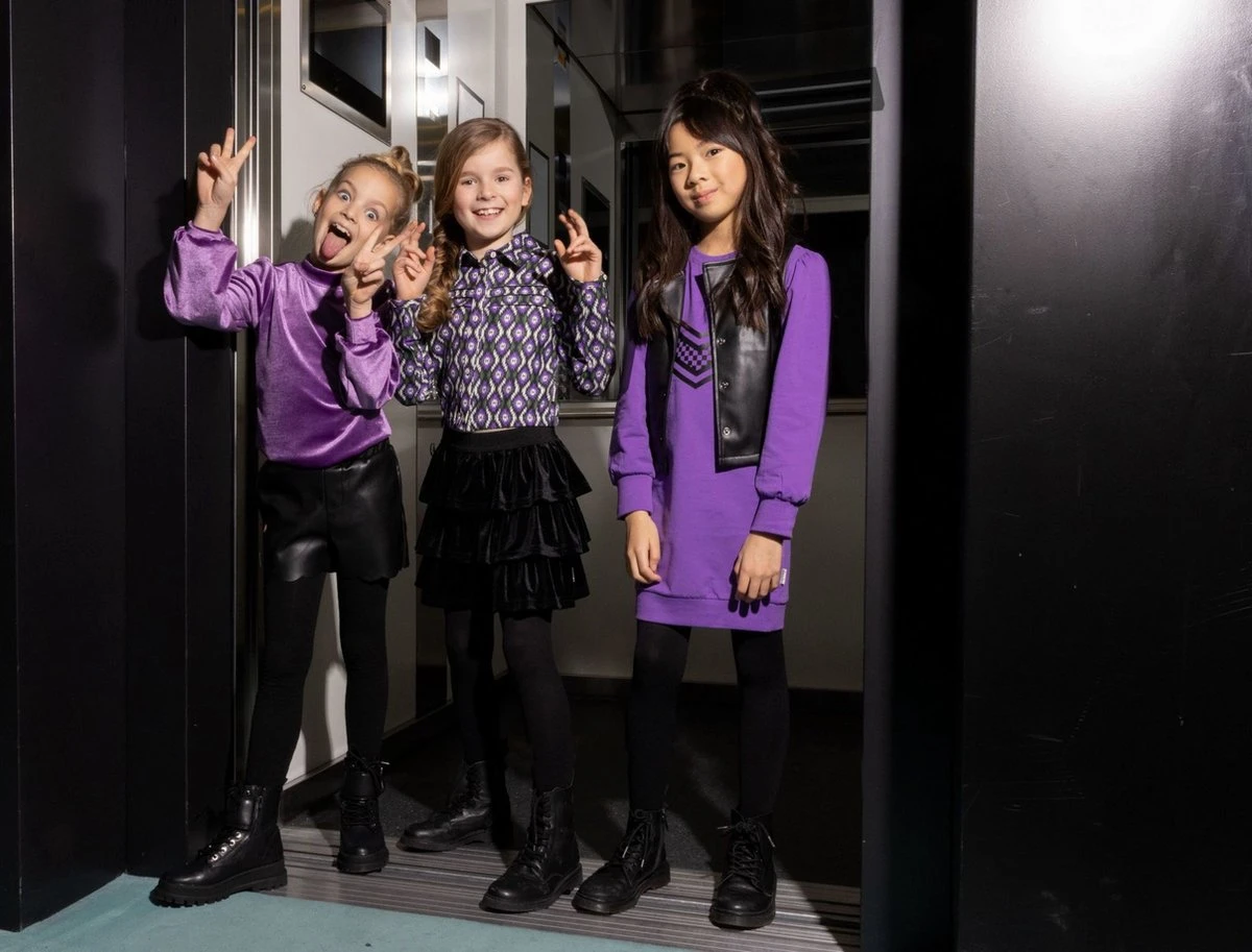 B.Checked! Super stoere B.Nosy sweat jurk met V-vormige print op de voorkant. Te combineren met de fake leather B.Nosy legging met kniestukken uit dezelfde B.Checked lijn.