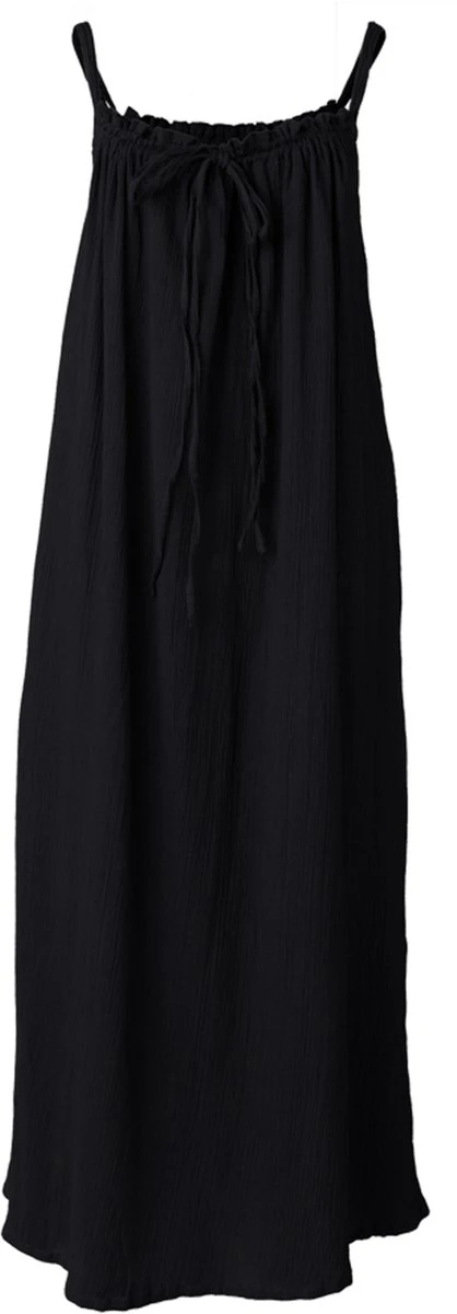 De Delphina Jurk is een lange jurk gemaakt van een gekreukte katoenen stof. Het koordje kan zowel aan de voorkant als aan de achterkant worden gedragen, wat de jurk speels maakt.