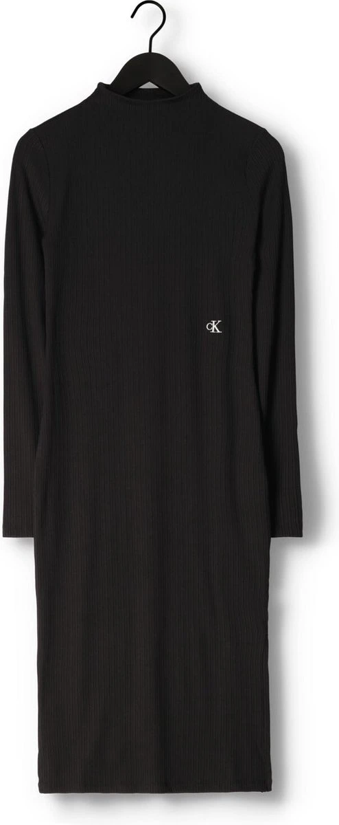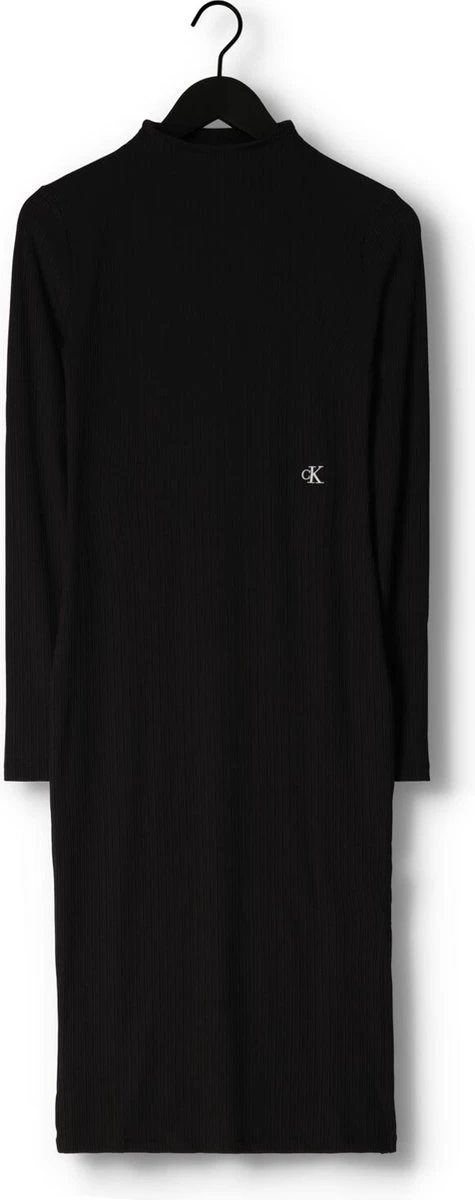 Calvin Klein Shiny Rib High Neck Dress Jurken Dames – Rok – Jurk – Zwart – Maat L