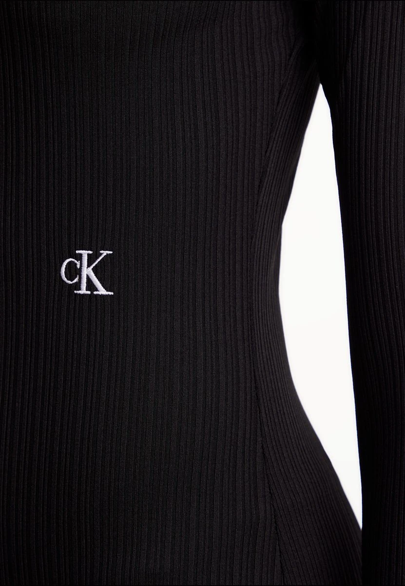 Zwarte Calvin Klein Midi jurk Shiny RIB High Neck Dress