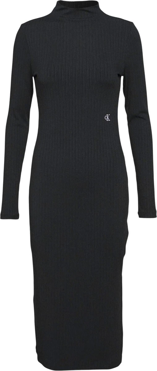 Zwarte Calvin Klein Midi jurk Shiny RIB High Neck Dress