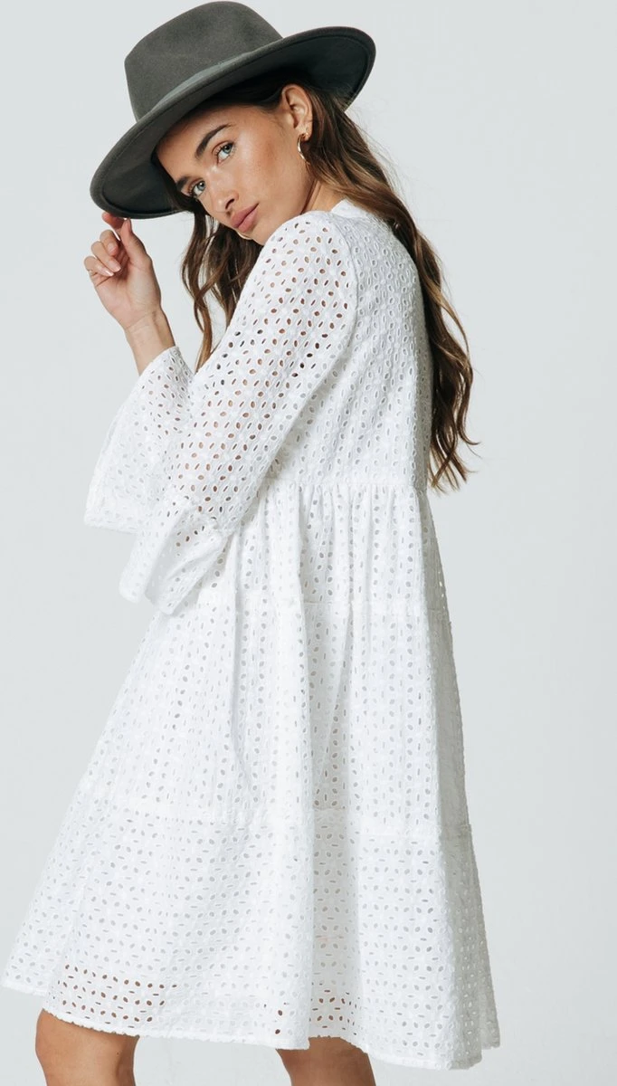 Colourful Rebel Indy Broodrie Anglaise Jurk Wit Dames – Loose Fit – Katoen – M