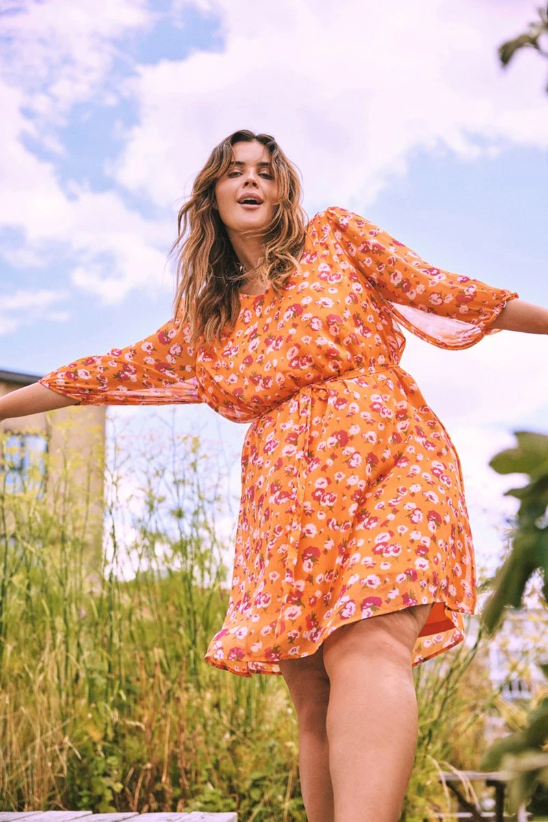 Deze jurk heeft de perfecte pasvorm die je unieke vorm zal flatteren. In tegenstelling tot natuurlijke vezels houdt polyester op uitstekende wijze zijn vorm vast. – Type product : Jurk- Hals : V-Hals- Mouw lengte : 3/4 mouwen- Mouwen : Ballonmouwen- Manchetten : Manchetten met elastiek- Lengte : Kort- Voering : Gerecyclede polyester voering voor een comfortabel gevoel- Details : Riem in de taille- Print : All-over print, herhaald over de hele stof