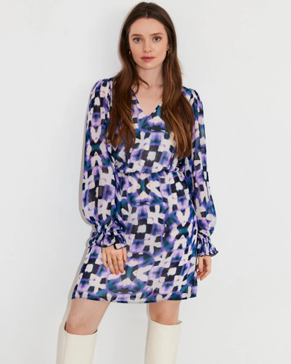 Paarse Freebird Mini jurk Wv-Aop-Ethnic-Vis-23-