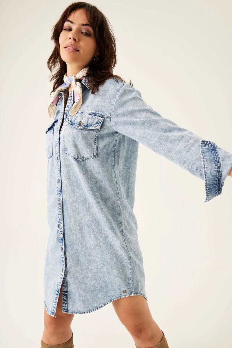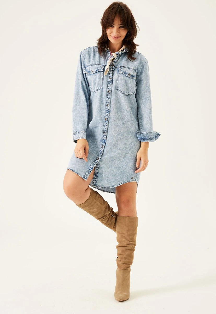 Denim jurk met borstzakken. Met deze jurk ben je helemaal on-trend. De jurk heeft een knoopsluting met afneembare tailleceintuur en een relaxed fit. Dit item is gemaakt van 100% katoen.