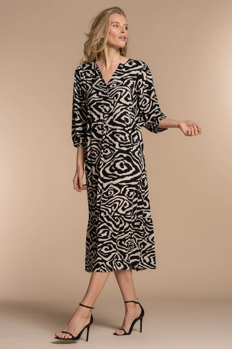 Midi jurk met grafische cultural print van het merk Geisha.100% viscose