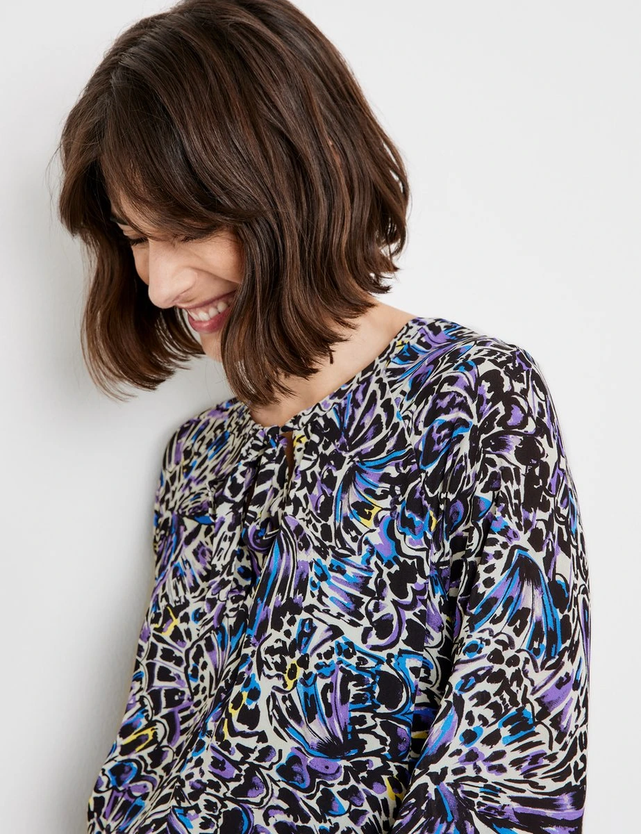 GERRY WEBER Dames Chiffon Jurk Ecru/Weiss/Blau Druck-40