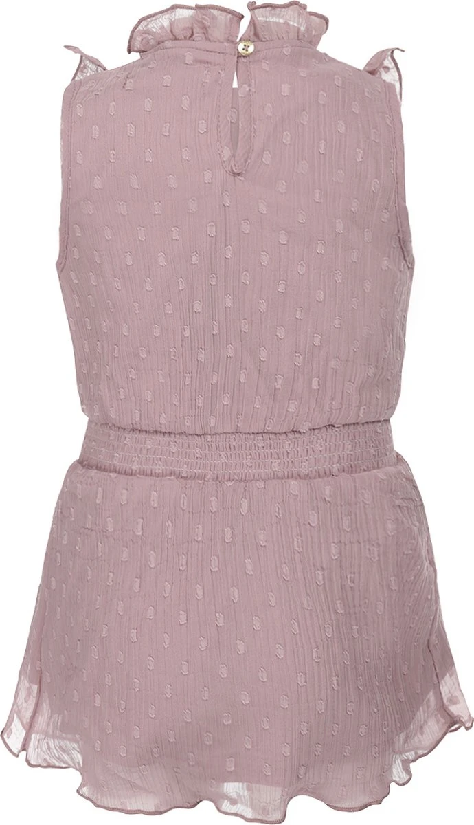 Leuke jurk van Koko Noko. Dit broderie jurkje is mauve van kleur en heeft verschillende leuke ruches en accenten die hem helemaal afmaken!