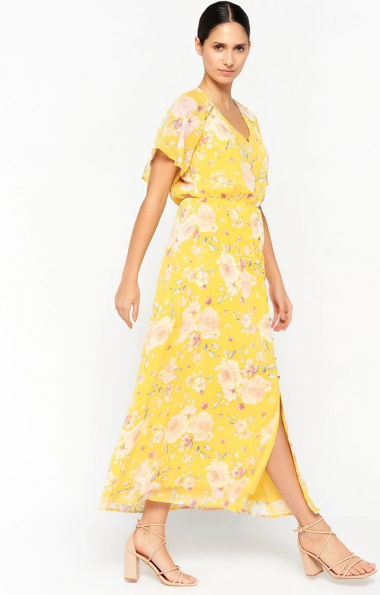 LOLALIZA Maxi-jurk Met Bloemenprint – Geel – Maat 44