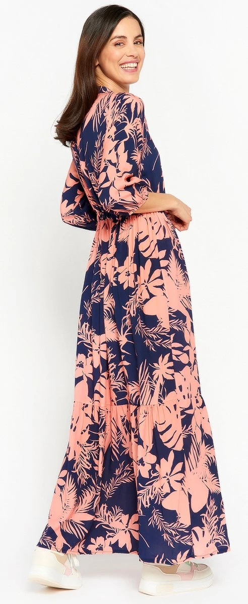 LOLALIZA Maxi-jurk Met Bloemenprint – Marine Blauw – Maat 48
