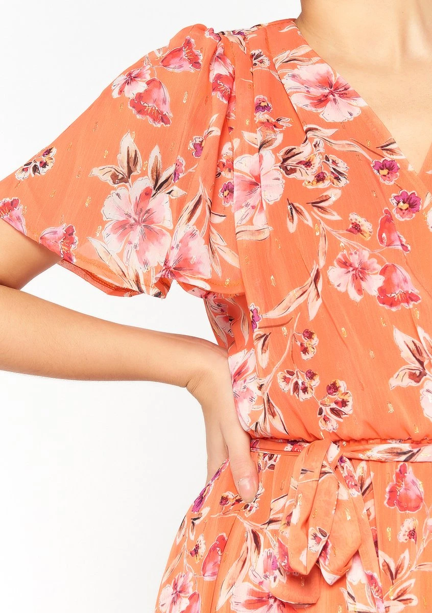 LOLALIZA Maxi-jurk Met Bloemenprint – Oranje – Maat 40
