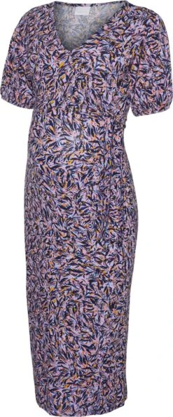 Voeg comfort en kleur toe aan je garderobe met prachtige jurken die je buik ondersteunen en passen bij elke gelegenheid, of het nu een alledaagse activiteit of speciaal evenement is.Ons Bewustzijnslabel geeft aan en verzekert dat het product gewenste materialen bevat zoals biologisch katoen, gerecycled polyester, Lenzing™, EcoVero™, Modal, Viscose & Tencel™.- Type product : Jurk- Hals : V-Hals- Mouw lengte : 3/4 mouwen- Lengte/maat : Boven de knie- Details : Inclusief riem, Voedingsfunctie met wikkeleffect- Print : All-over print, herhaald over de hele stof- Pasvorm : Bodycon fit