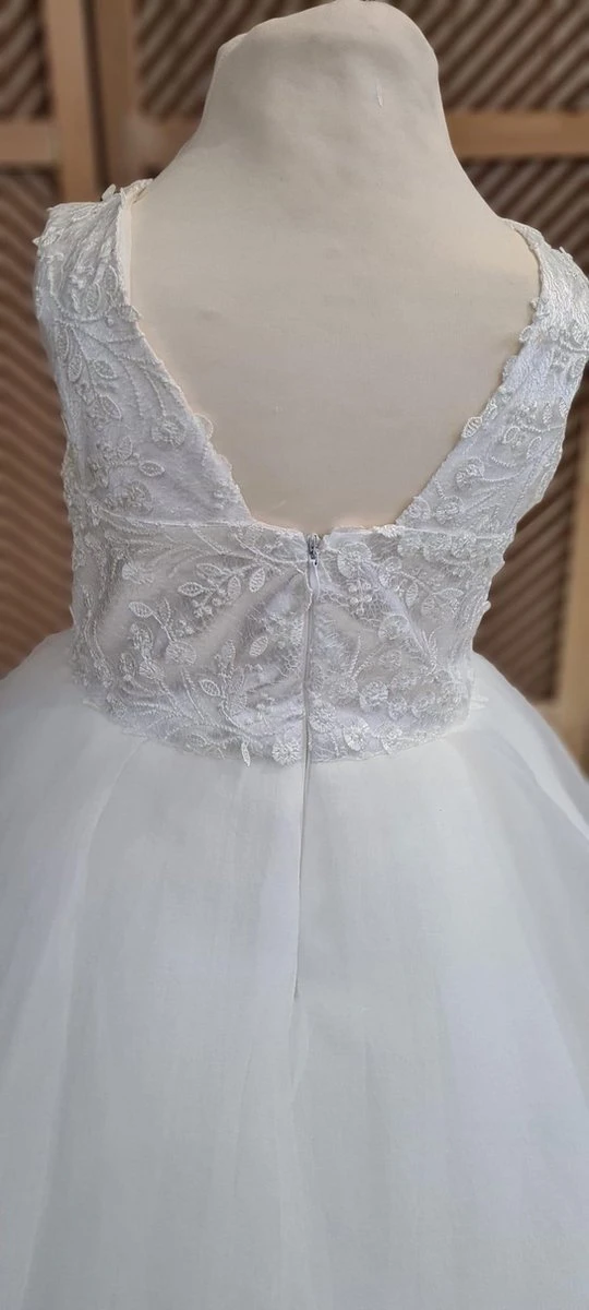 Merkloos Feestjurk Meisjes-moderne Jurk Met Tule-galajurk-bruidsjurk-communie Jurk-prinsessen Jurk-bruidsmeisjes-communie-bruiloft -verjaardag-fotoshoot-creme Wit Kleur-3 Jaar