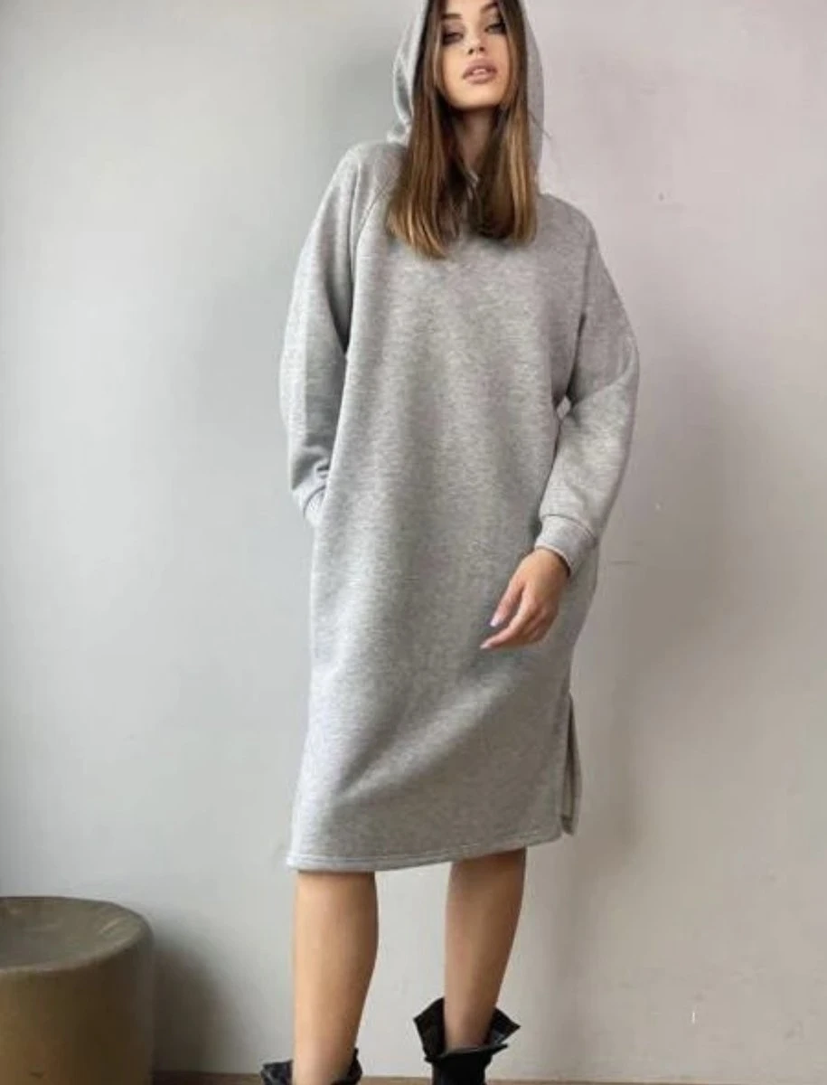 Helemaal hot dit seizoen, de sweater jurk met capuchon.