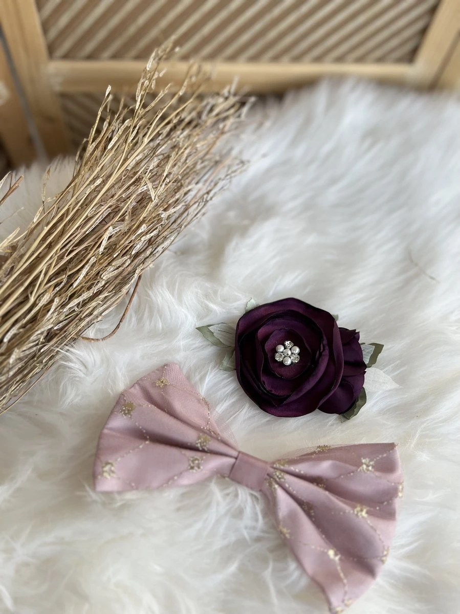 Om de middel zit een paarse sierbloem met pareltjes en steentjes waardoor u de taille nog iets meer kunt accentueren (bloemetje kan uitgehaald worden) .