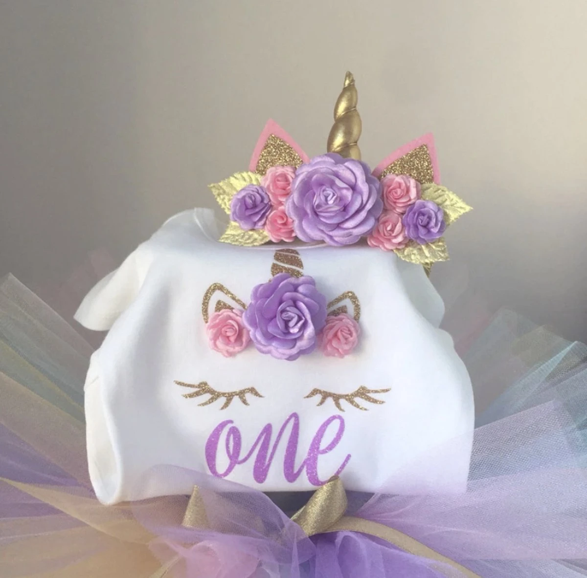 Productbeschrijving My 1 st Birthday UNICORN verjaardagset met haarband