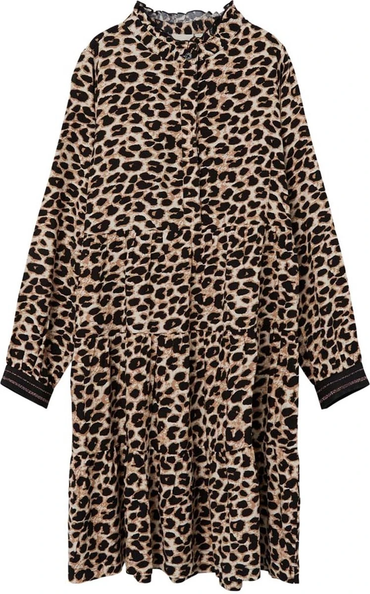 Stel de perfecte outfit samen voor je kind met alledaagse items van hoge kwaliteit, waarmee je een comfortabele en trendy look kunt creëren. De geweven stof heeft een duidelijk kruislings patroon en oppervlak met structuur, wat zorgt voor een strakke en klassieke look. – Type product : Jurk- Hals : O-hals- Mouw lengte : Lange mouwen- Manchetten : Manchetten met elastiek- Details : Glitterdetail, Peplum detail- Print : All-over print, herhaald over de hele stof