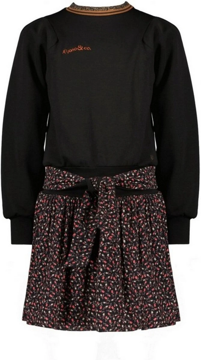 Met dit jurkje ben je in 1 keer klaar. Mooie sweat boventop en tulpjes geprinte rok op 100% viscose.
