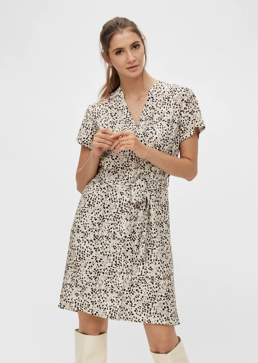 Doorknoop jurk van het merk OBJECT. De jurk heeft korte mouwen en een ceintuur.