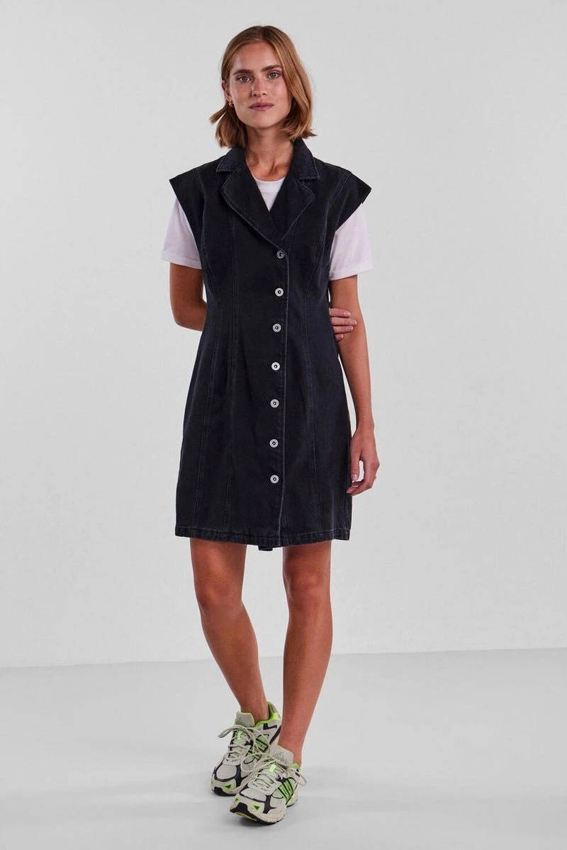 Vind jouw perfecte alledaagse look. Met kwaliteitskleding kun je tijdloze, comfortabele en trendy outfits creëren, die elke dag van de week werken Denim is een sterke katoenen stof die verkrijgbaar is in verschillende varianten – Type product : Denim jurk- Hals : V-Hals- Mouw lengte : Mouwloos- Lengte : Kort- Details : Knoop detail