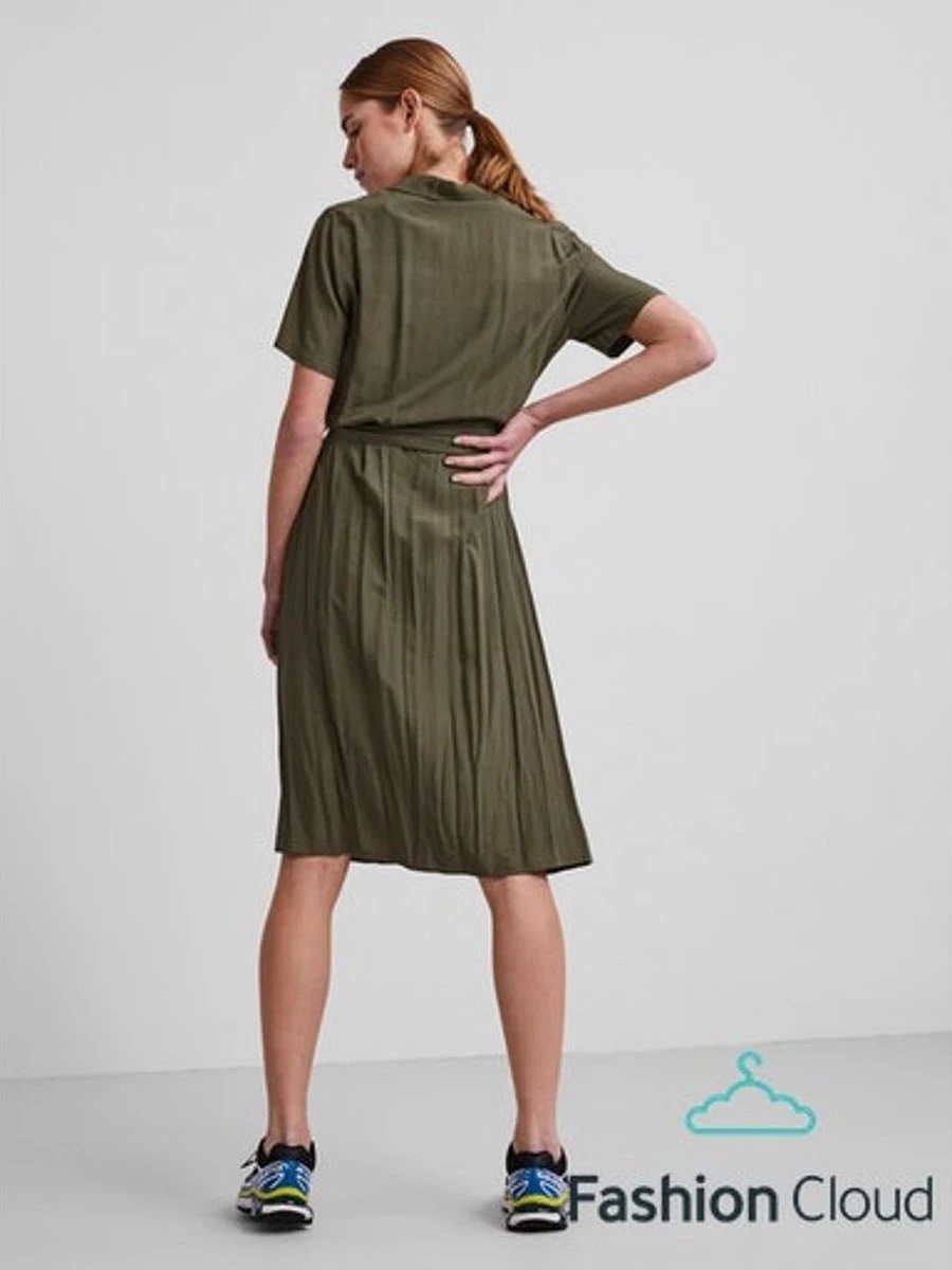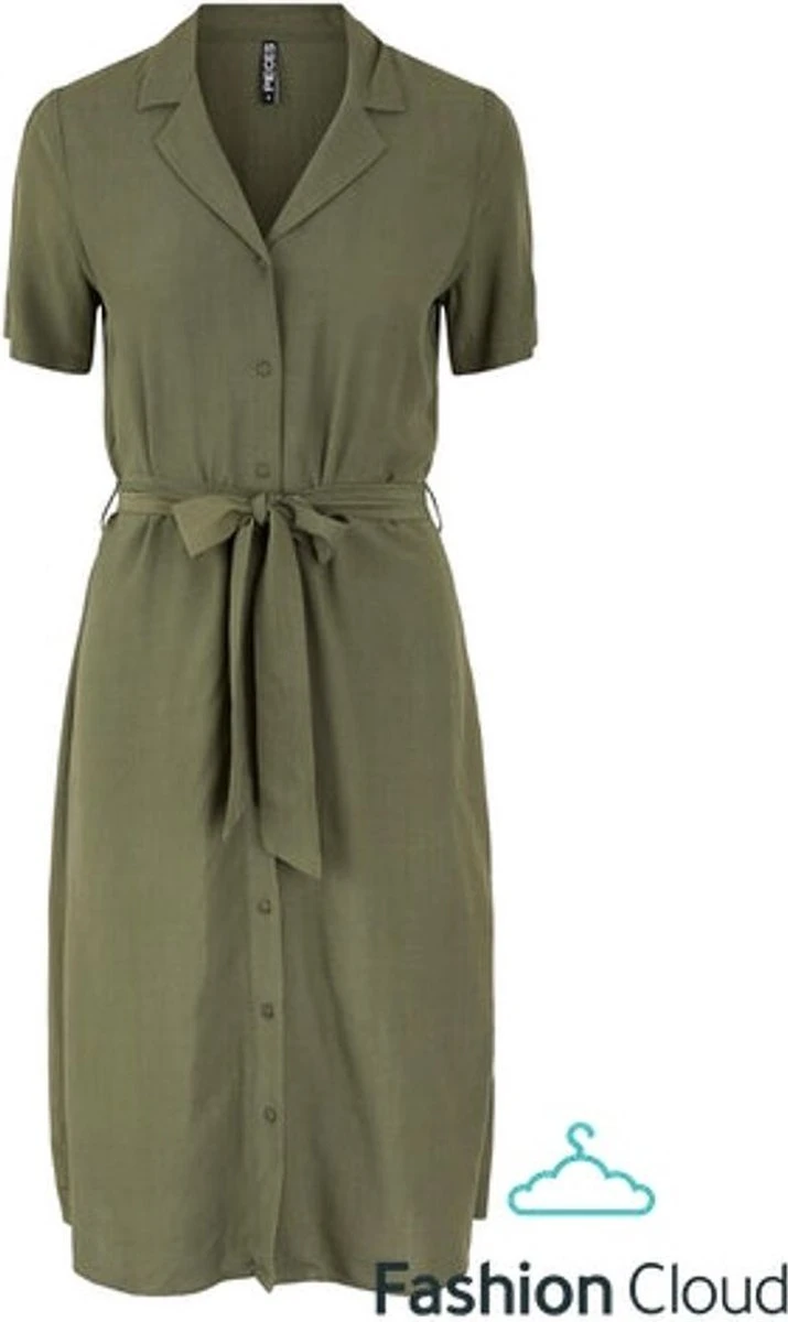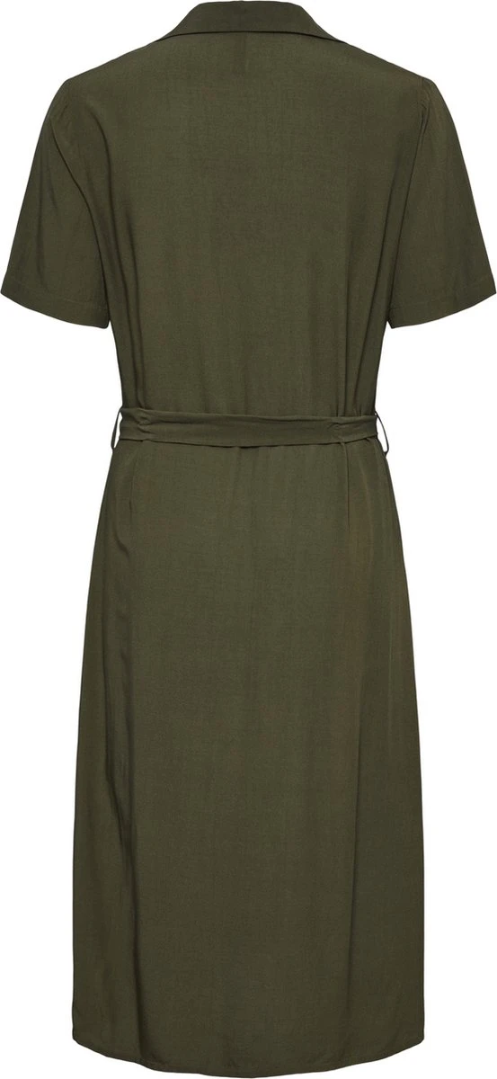 Deze groene jurk is een mooie basis voor in je garderobe. De jurk heeft knoopjes aan de voorkant en een riem in de taille. De jurk is gemaakt van 100% viscose waardoor deze heerlijk draagt.