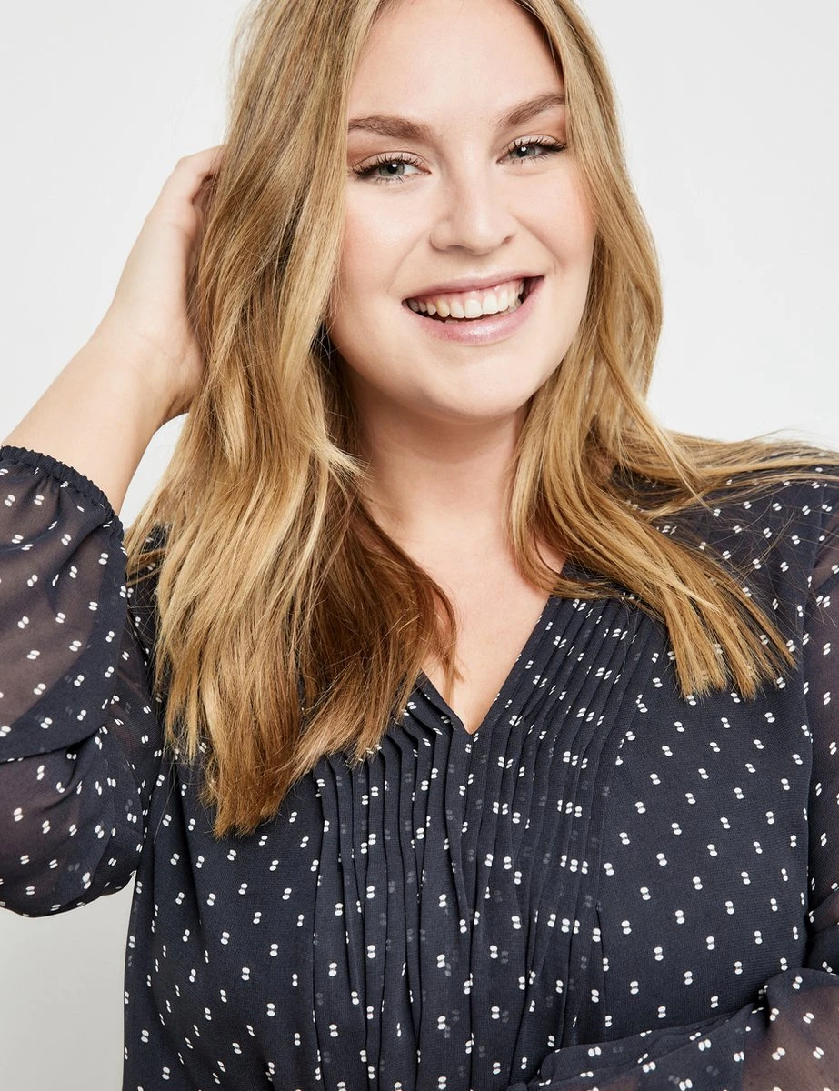 SAMOON Dames Chiffon Jurk Navy Gemustert-46