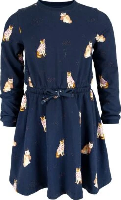 Jurkje met all-over katten van Someone in een mooie navy kleur. De jurk heeft een ronde hals en een elastieken band bij de taille. Combineer met een legging of maillot.