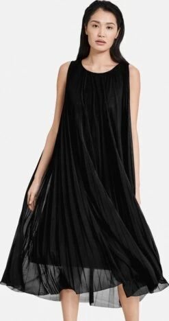 Maakt jouw outfit compleet voor officiële gelegenheden en mag in geen garderobe ontbreken: de kuitlange A-lijn-jurk is een vrouwelijke blikvanger. Het plissé is elastisch en maakt de geplisseerde jurk comfortabel. Een knoopsluiting aan de achterkant maakt het design compleet.