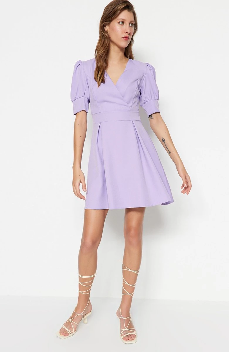 Trendyol Vrouwen Ballon Mouw Cache-coeur A-lijn Jurk