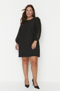 Trendyol Vrouwen Ballon Mouw Ronde Hals A-lijn Plus Size Jurk