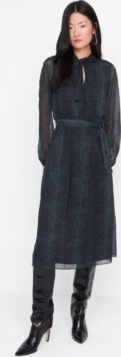 Trendyol Vrouwen Ballon Mouw Sjaalkraag Verschuiving Jurk