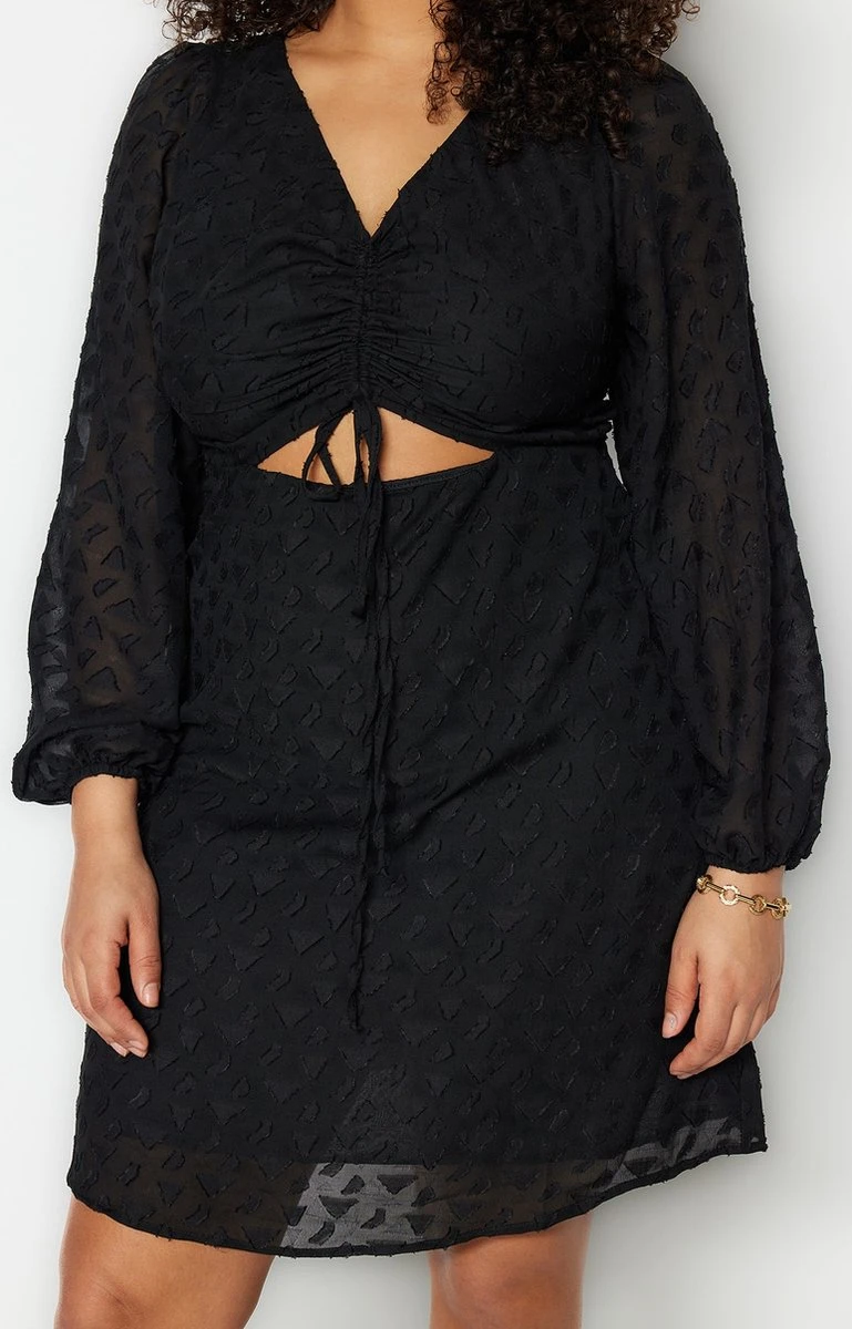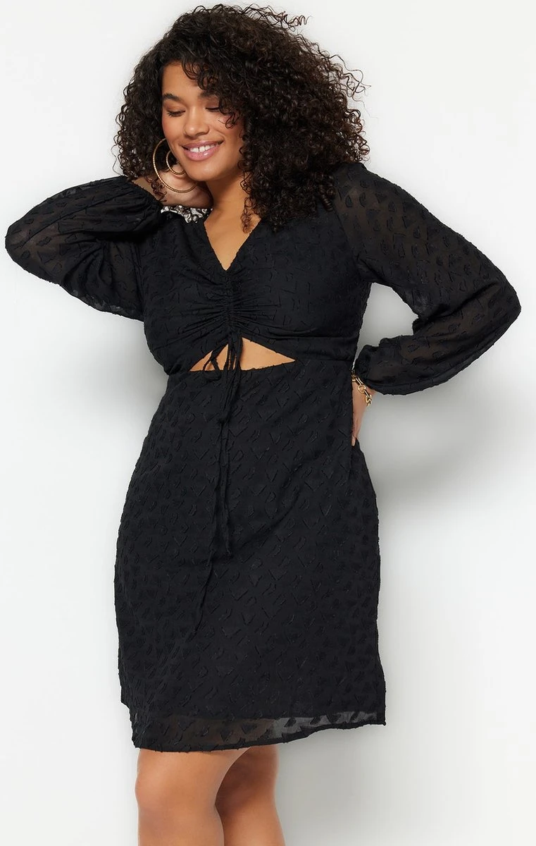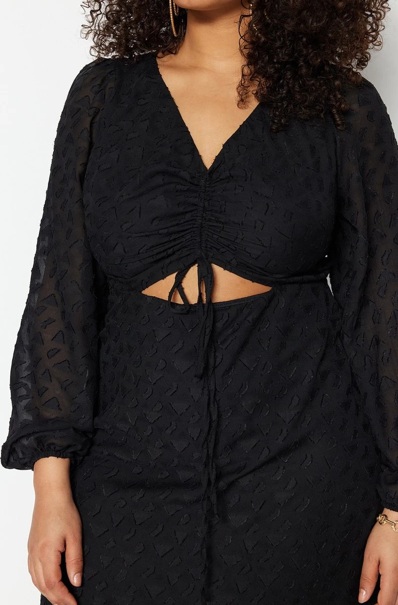 Trendyol Vrouwen Ballon Mouw V-hals Schaatser Grote Maten Jurk