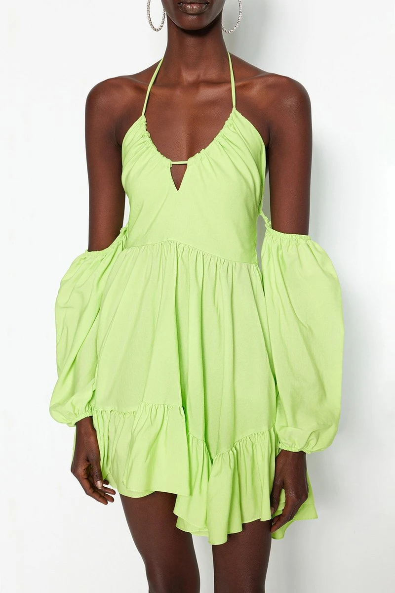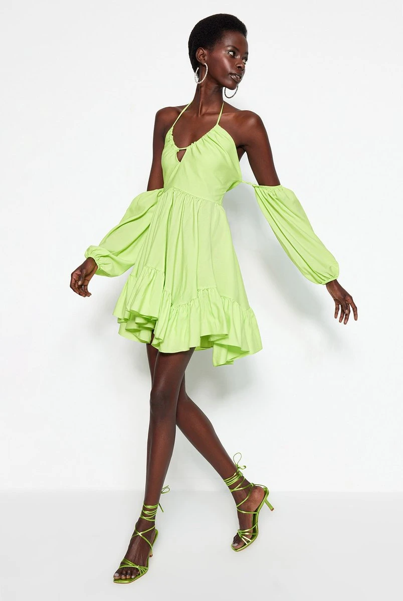 Trendyol Vrouwen Ballon Mouw Vierkante Kraag Schaatser Jurk