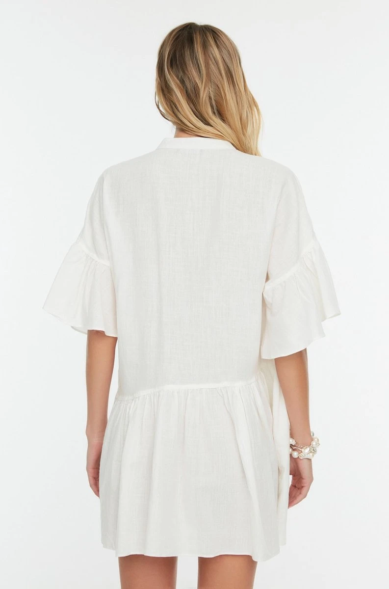 Trendyol Vrouwen Gepofte/ruche Mouw Lieve Schat Aangerimpelde Jurk Jurk