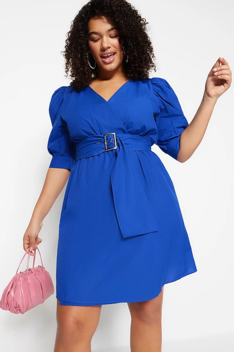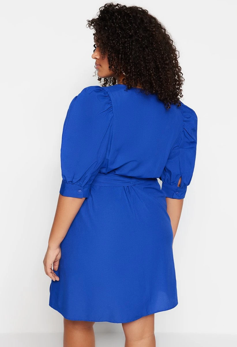 Trendyol Vrouwen Gepofte/ruche Mouw V-hals Omslag Grote Maten Jurk