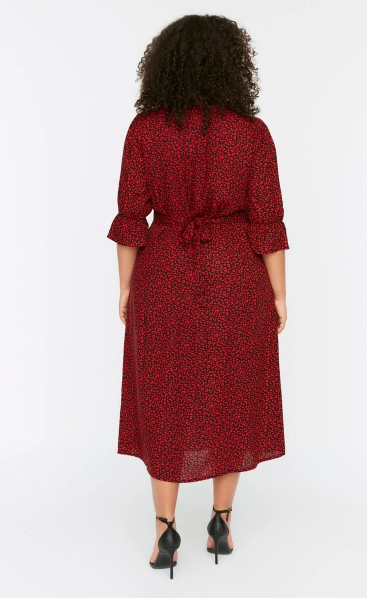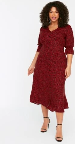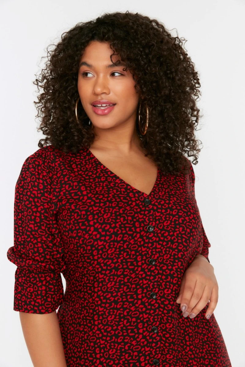 Trendyol Vrouwen Gepofte/ruche Mouw V-hals Overhemdjurk Plus Size Jurk