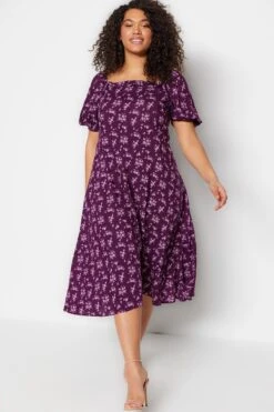 Trendyol Vrouwen Gepofte/ruche Mouw Vierkante Kraag A-lijn Grote Maten Jurk