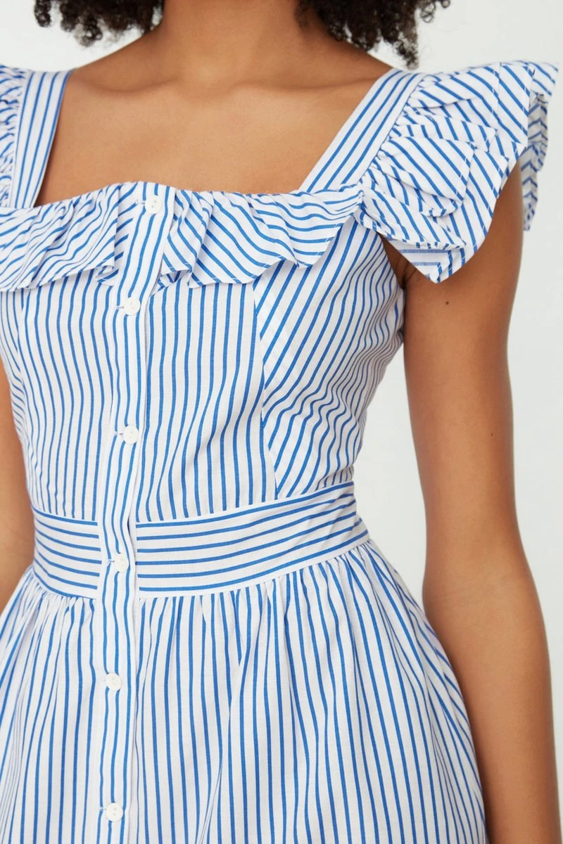 Trendyol Vrouwen Gepofte/ruche Mouw Vierkante Kraag Overhemdjurk Jurk