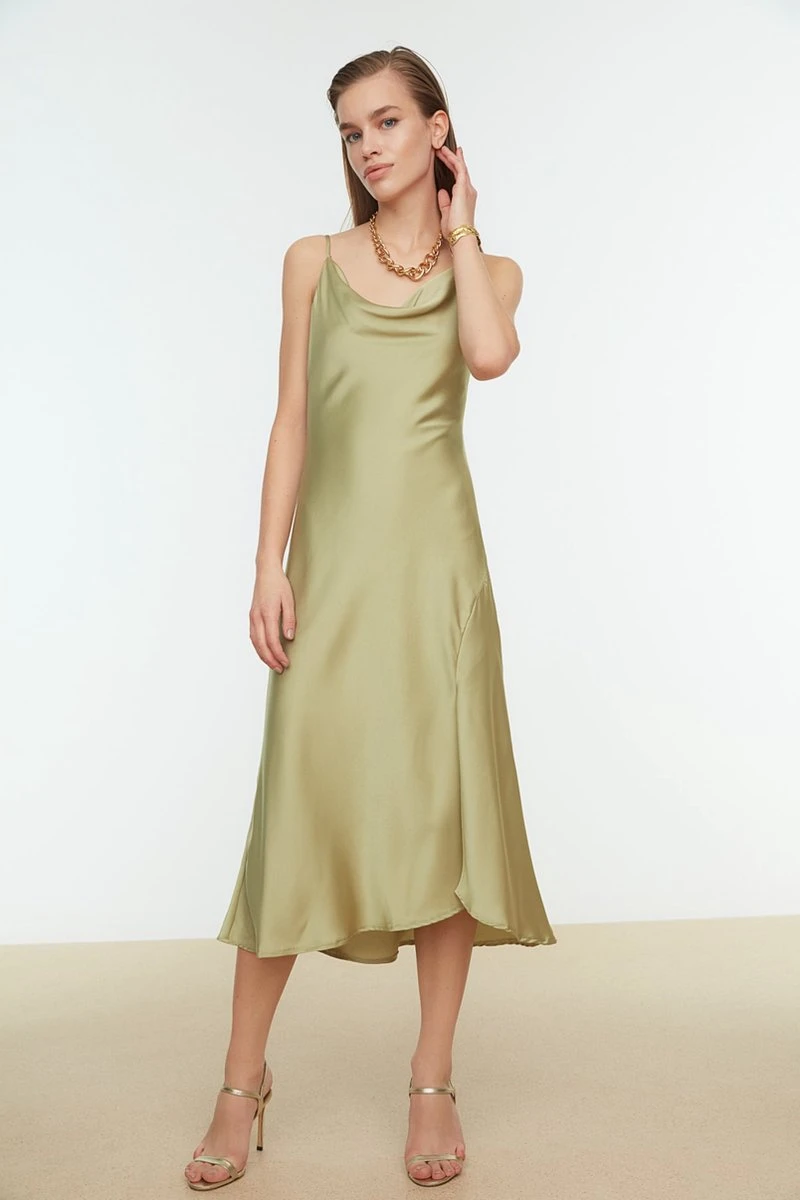 Trendyol Vrouwen Standaard Mouw Col Nek Verschuiving Jurk