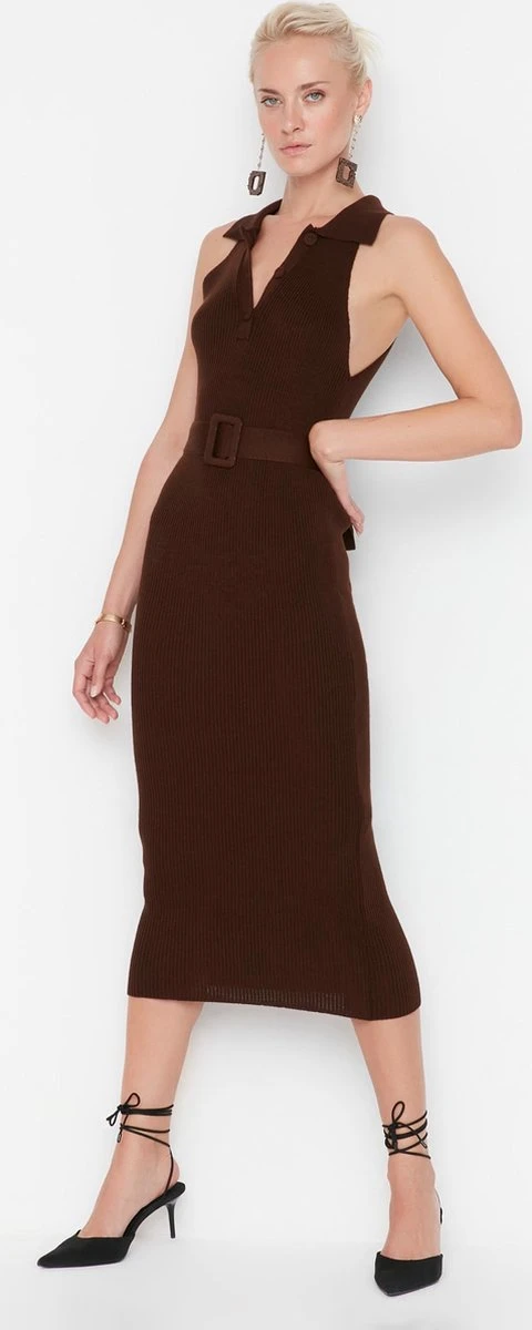 Trendyol Vrouwen Standaard Mouw Polo Nek Bodycon Jurk
