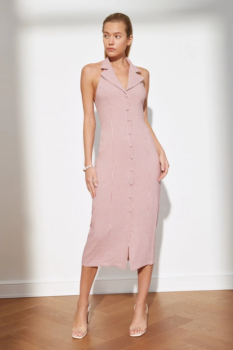 Trendyol Vrouwen Standaard Mouw Reverskraag Bodycon Jurk