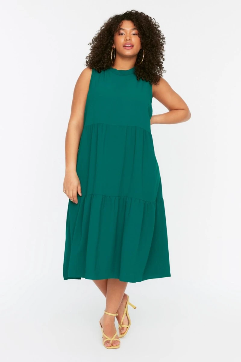 Trendyol Vrouwen Standaard Mouw Ronde Hals Basis Grote Maten Jurk