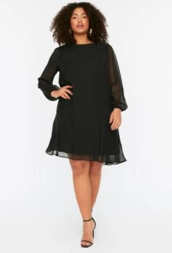 Trendyol Vrouwen Standaard Mouw Ronde Hals Basis Grote Maten Jurk