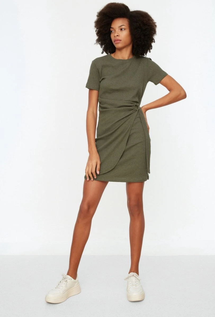 Trendyol Vrouwen Standaard Mouw Ronde Hals Omslag Jurk