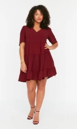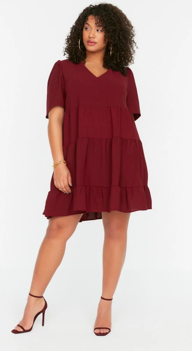 Trendyol Vrouwen Standaard Mouw V-hals A-lijn Grote Maten Jurk
