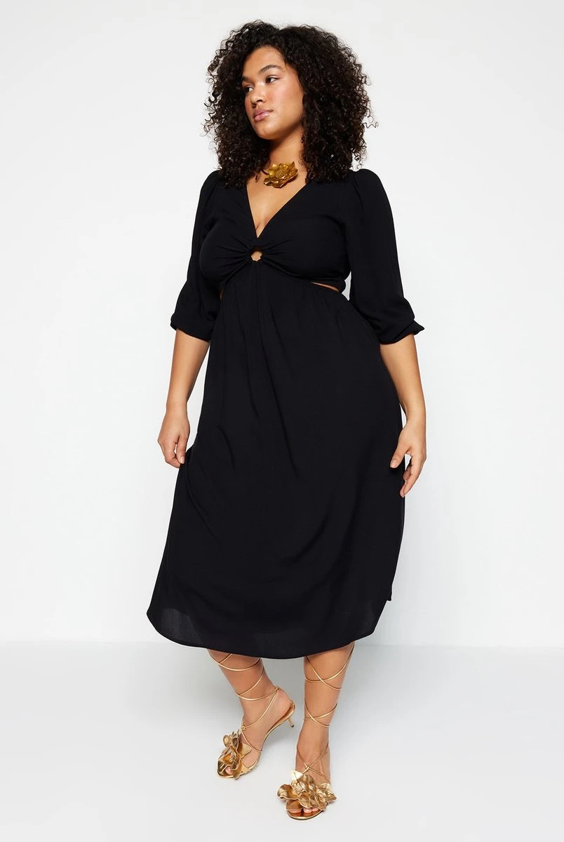 Trendyol Vrouwen Standaard Mouw V-hals A-lijn Plus Size Jurk