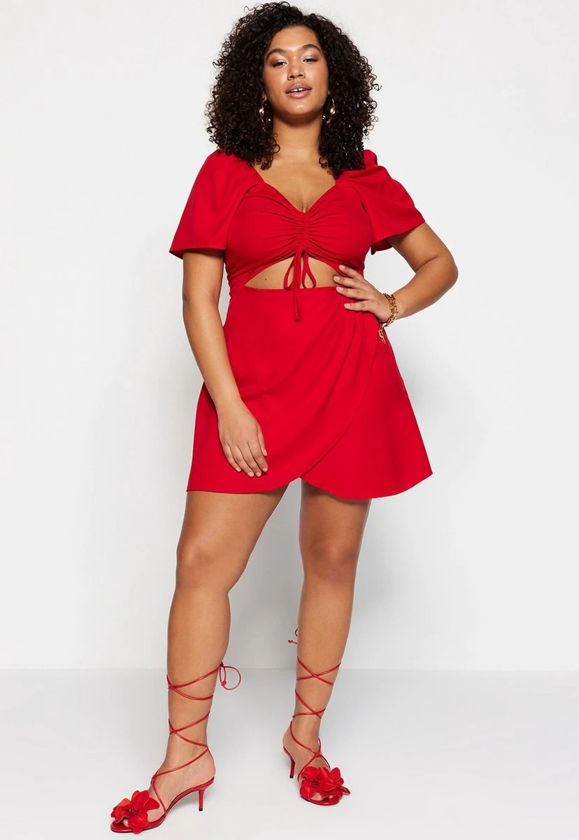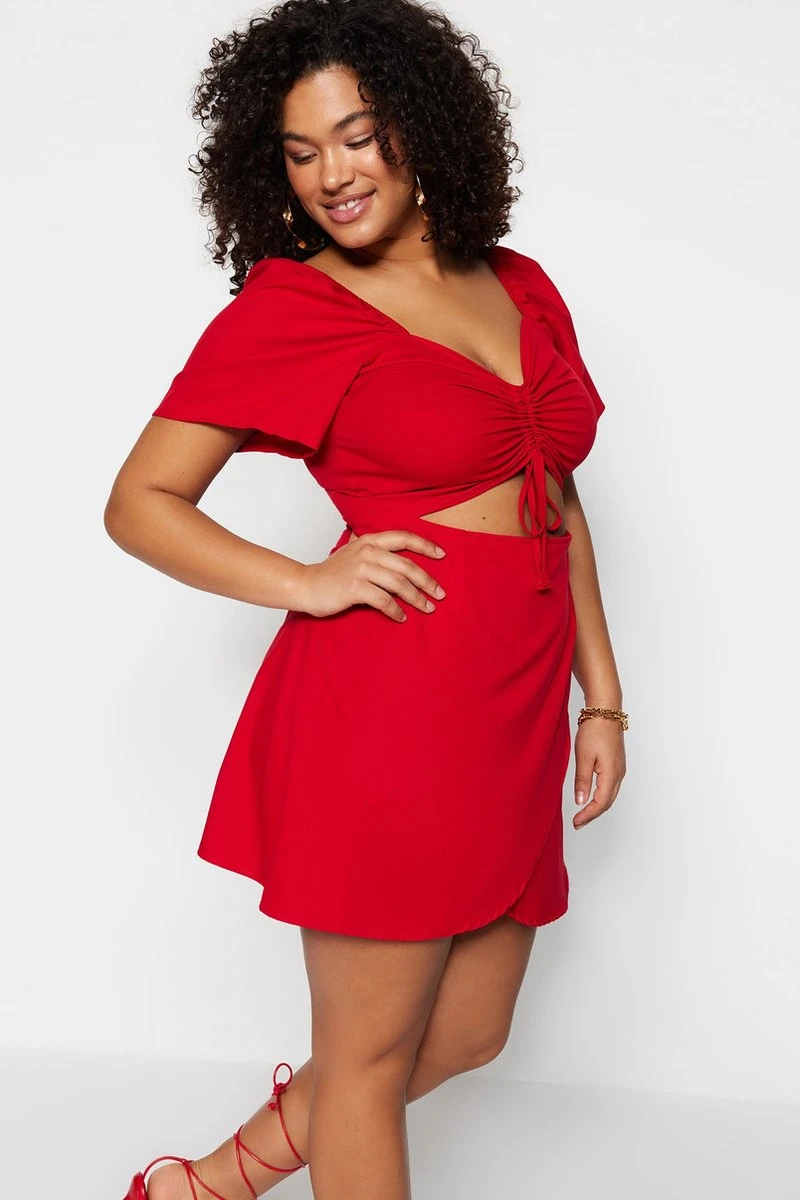 Trendyol Vrouwen Standaard Mouw V-hals A-lijn Plus Size Jurk