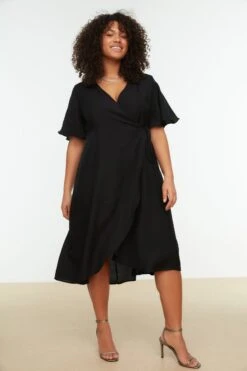 Trendyol Vrouwen Standaard Mouw V-hals Omslag Plus Size Jurk